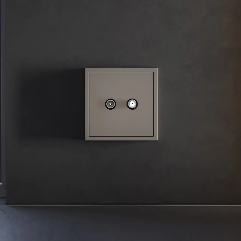 Розетка легко комбинируется с другими устройствами серии — например, можно разместить рядом электрическую розетку для питания ТВ и USB-порт для приставки в одной рамке, создав функциональный и стильный блок управления.