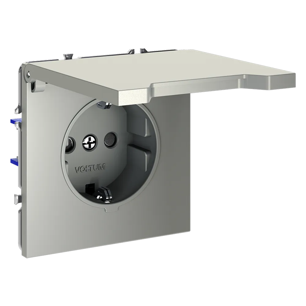 Розетка VOLTUM S70 с заземлением и защитными шторками и откидной крышкой  — это решение максимальной безопасности и эстетики для современного интерьера. Идеально подходит для детских комнат, ванных, прихожих, кухонь и уличных зон под навесом, где важна защита от пыли, брызг и случайного контакта с токоведущими частями.