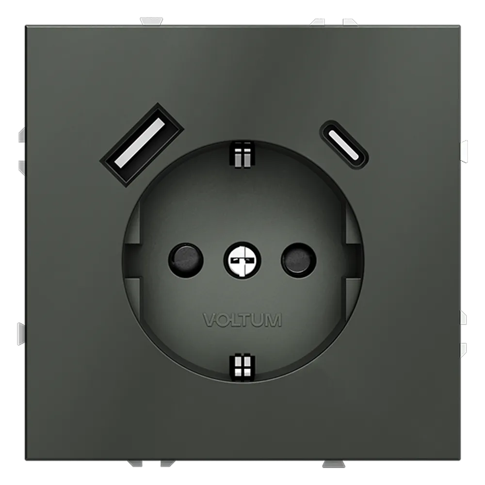 Розетка встраиваемая VOLTUM S70 с заземлением и защитными шторками 16А с USB А+С (титан)