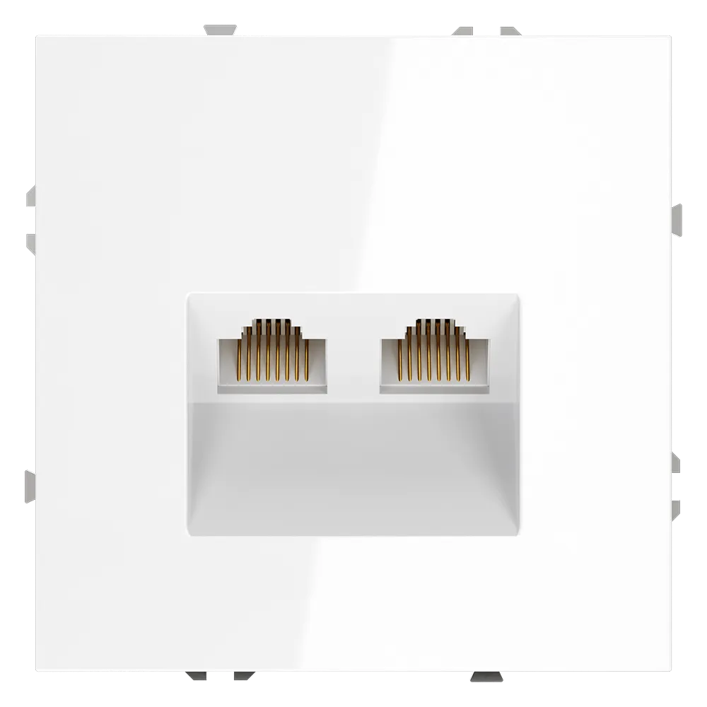 Розетка компьютерная встраиваемая VOLTUM S70 двойная RJ45+RJ45 кат.6 (белый глянцевый)