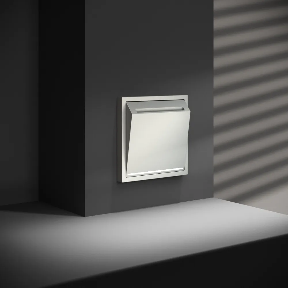 Проходной переключатель встраиваемый VOLTUM S70 одноклавишный с подсветкой 10А (сталь)
